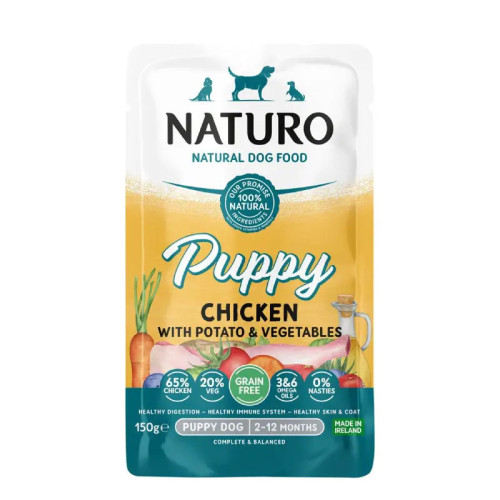 O alimento Naturo é complementada com vitaminas, minerais e óleos essenciais, e ainda assim rica e carnuda, para que seu cachorro coma a melhor comida húmida!