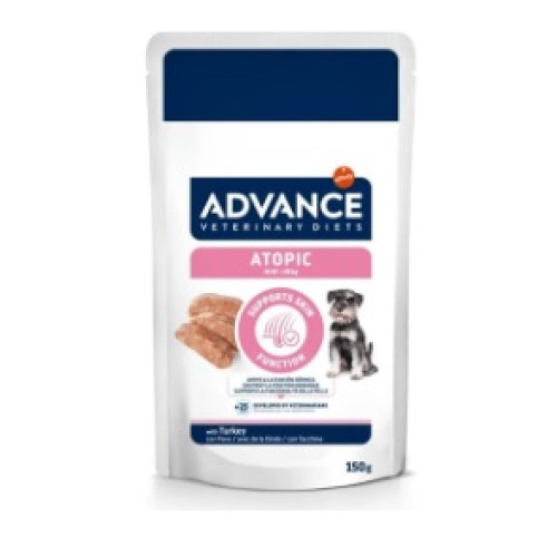 Advance Veterinary Diets Atopic é um alimento dietético completo para cães, formulado para o cuidado da pele em caso de dermatites e queda excessiva de pelos, bem como para reduzir intolerâncias a ingredientes e nutrientes.
