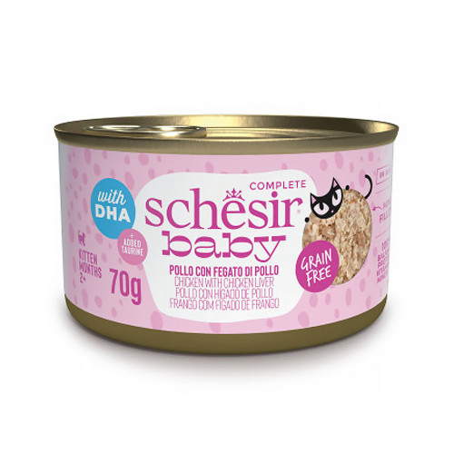 Schesir baby oferece receitas completas e equilibradas com texturas suaves, para satisfazer as necessidades específicas do gatinho, desde as primeiras semanas de vida. Contém taurina para estimular o crescimento e DHA para auxiliar no correto desenvolvimento cerebral. Com verdadeira proteína de carne e sem cereais, combinada com outros ingredientes importantes.