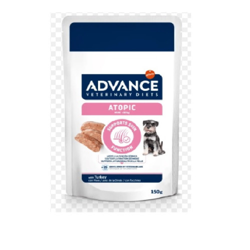Advance Veterinary Diets Atopic é um alimento dietético completo para cães, formulado para o cuidado da pele em caso de dermatites e queda excessiva de pelos, bem como para reduzir intolerâncias a ingredientes e nutrientes.