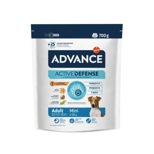 Advance Mini Adult Chicken & Rice é um alimento indicado para cães adultos, de 8 meses até aos 8 anos, de raça pequena, que não atinjam 10kg. em idade adulta.