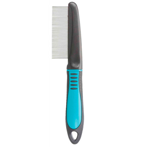 - Dentes arredondados para cuidado suave do pelo